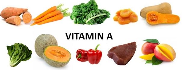 Atau disebut juga sebagai retinol. Terdapat pada sayur-sayuran dan buah-buahan berwarna kuning dan merah yang mengandung karoten di dalamnya, ada juga pada hati, susu, dan daging. Fungsi dari vitamin A yaitu untuk memelihara kesehatan mata dan kulit serta pertumbuhan tulang dan gigi. Akibat kekurangannya yaitu seroftalmia atau terganggunya kelenjar air mata, mengalami rabun senja, kulit kasar dan kelelahan.