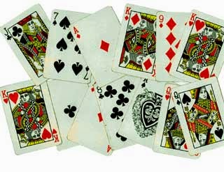 Seperangkat kartu bridge berisi 52 kartu yang terdiri dari empat kelompok yang dikenal dengan istilah daun / sekop ( | ||